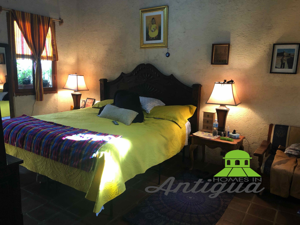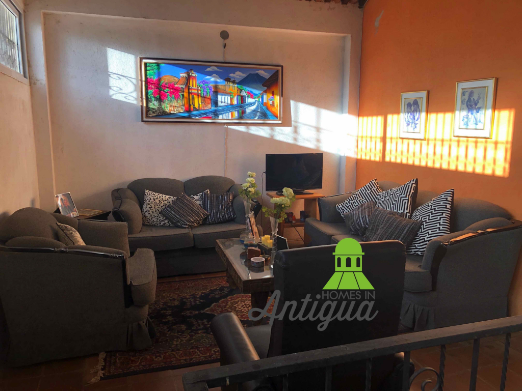 Preciosa casa con diferentes ambientes y diferentes áreas sociales, cuenta con 5 habitaciones, 5.5 baños, sala, comedor, cocina, varias salas distribuidas en toda la casa, parqueo para 2 vehículos, muy bien iluminada a solo pasos del centro de Antigua. Una excelente opción a muy poca distancia del centro de Antigua. La casa viene completamente equipada y cuenta con todos sus servicios. Tiene una terraza en donde podemos disfruta de una vista impresionante a los volcanes.
